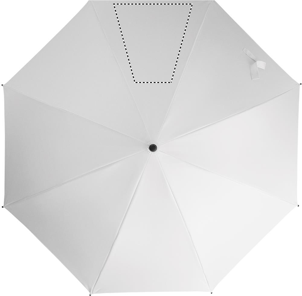 23'' Regenschirm aus 190T Pongee. Stock aus schwarz überzogenem Metall und Stangen aus Fiberglas. Krone und Spitzen aus Kunststoff. Gebogener Griff aus gummiertem PP. Automatische Öffnung, manuelle Schließung.