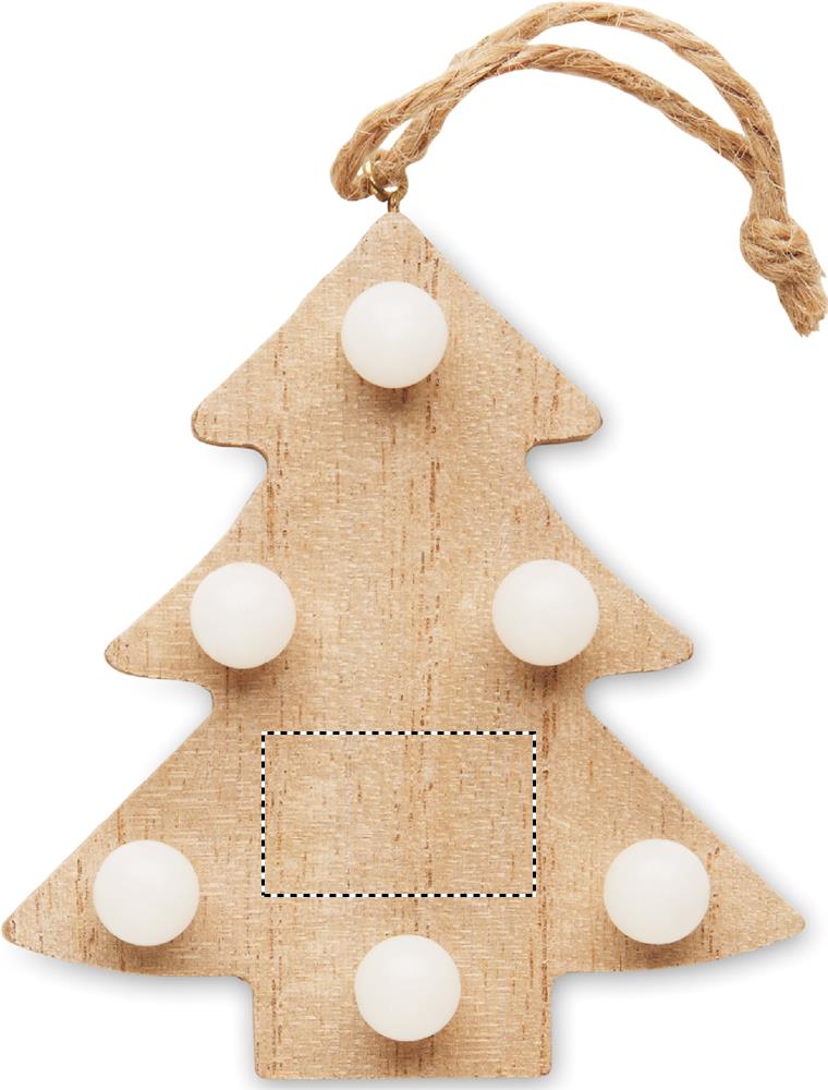 Anhänger aus Holz in Form einer Tanne (80% Pappel und 20% Weide). Verziert mit 6 LED-Lichtern und Aufhänger aus Kordel. Inkl. 1 CR2032-Batterie. Holz ist ein natürliches Produkt, es kann daher zu leichten Abweichungen in Farbe, Dekor und Maßen kommen.