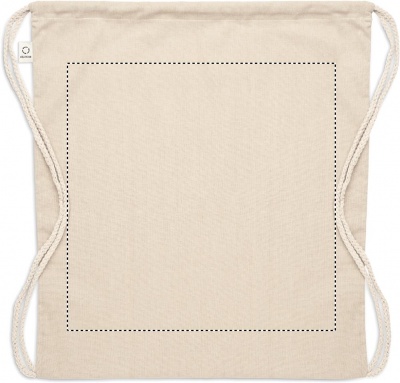 Beutel mit Kordelzug aus recycelter Pre-Consumer-Baumwolle (70 %) und RPET (30 %). 140 g/m².