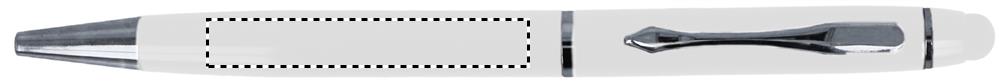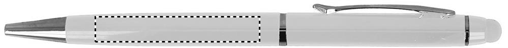 Drehkugelschreiber und Stylus aus Aluminium. Verpackt in einer Papierschachtel. Blaue Tinte.