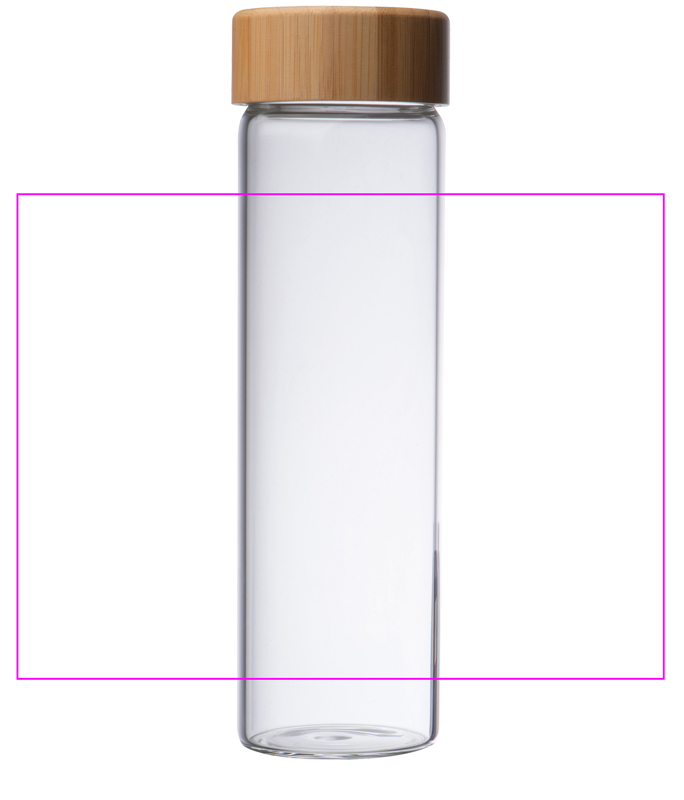 Glasflasche mit Bambusdeckel und 500ml Füllvolumen. Ihre Werbung wird auf dem Deckel eingraviert.