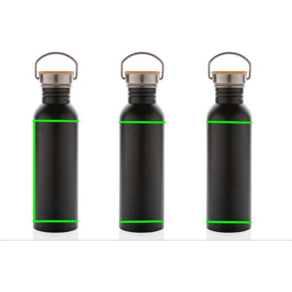 Moderne Stainless-Steel Flasche mit Bambusdeckel, Schwarz