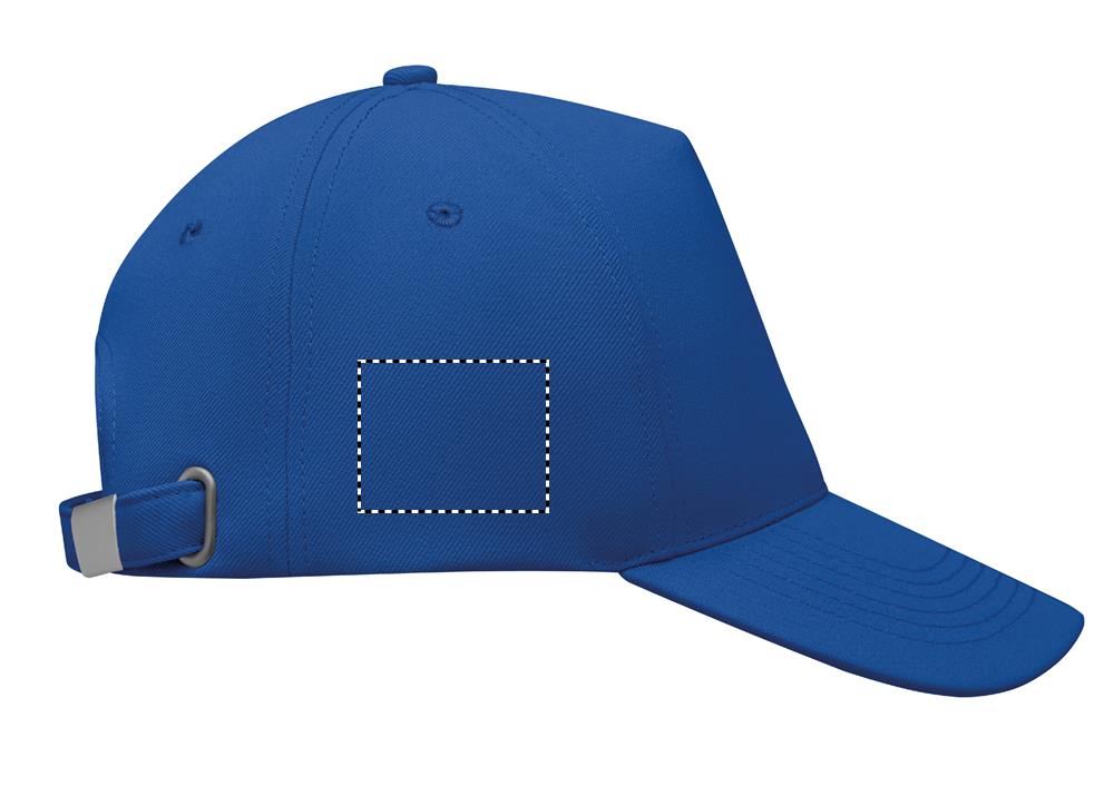 Baseball Kappe. 5 Panels. Silberne Schnalle aus Stahl. 4 farblich abgestimmte, umstickte Belüftungslöcher. RPET-Polyester 210g/m².Größe 7 1/4.