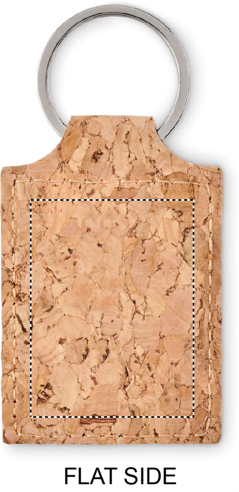 Schlüsselring mit eckigem Anhänger aus Kork. Kork ist ein 100% natürliches Material. Aufgrund seiner strukturellen Beschaffenheit und Oberflächenporosität kann das endgültige Druckergebnis pro Artikel Abweichungen aufweisen.