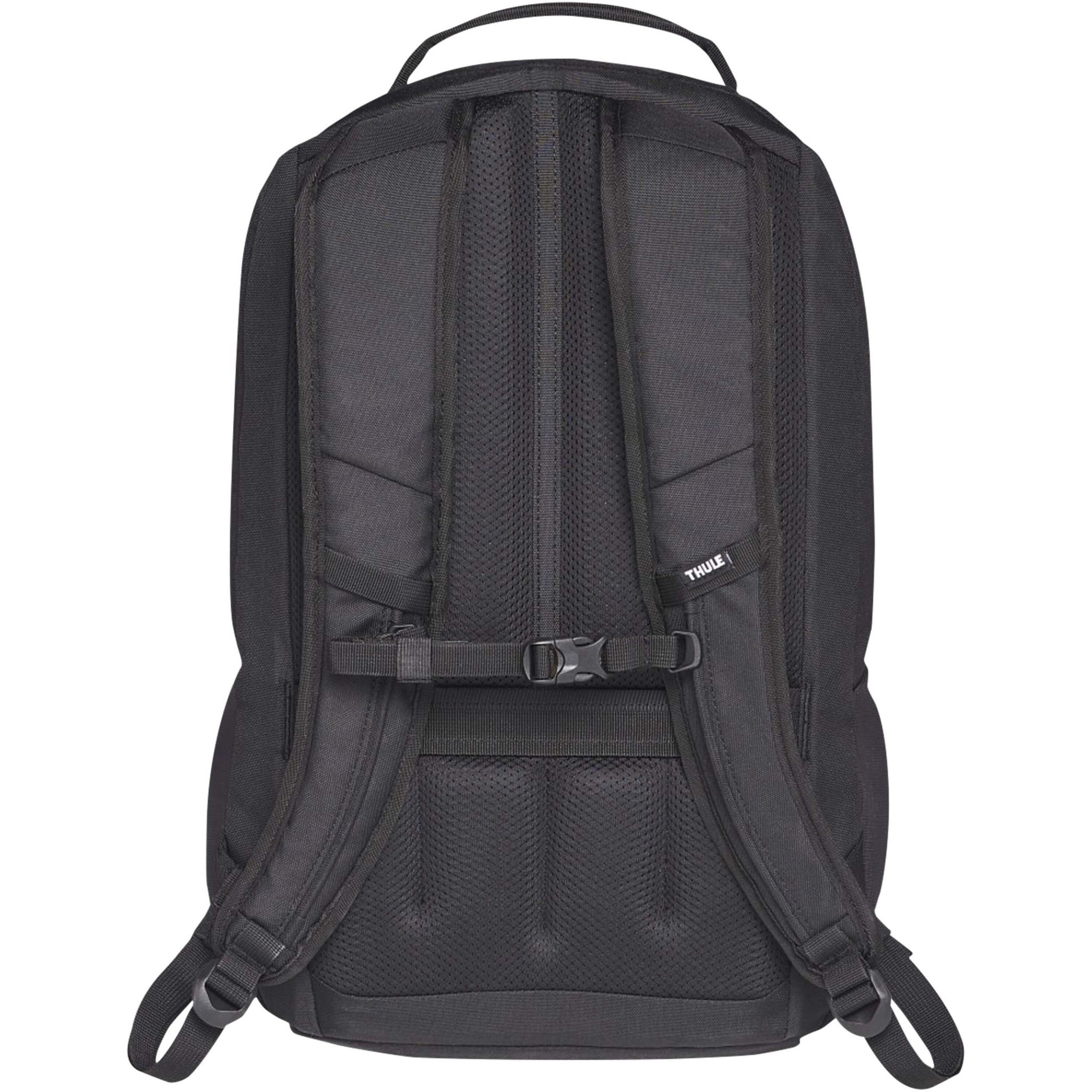 Der Thule Lumion 16''-Laptop-Rucksack ist aus recyceltem Polyester hergestellt und verfügt über eine Fronttasche mit Reißverschluss zur Organisation sowie ein größeres Reißverschlussfach mit einer gepolsterten 16''-Laptophülle. Der Tragegriff an der Oberseite ermöglicht ein einfaches Greifen und Tragen, während das gepolsterte Rückenteil die Lendenwirbelsäule stützt. Zu den weiteren Ausstattungsmerkmalen des Rucksacks gehören eine seitliche Tasche für Wasserflaschen und ein Daisy-Chain-Gurt.
