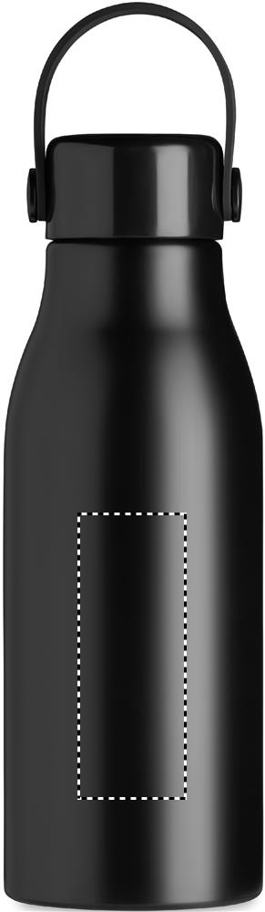 Einwandige Trinkflasche aus Aluminium mit Verschluss aus ABS und Silikon-Schlaufe. Füllmenge: 650 ml.