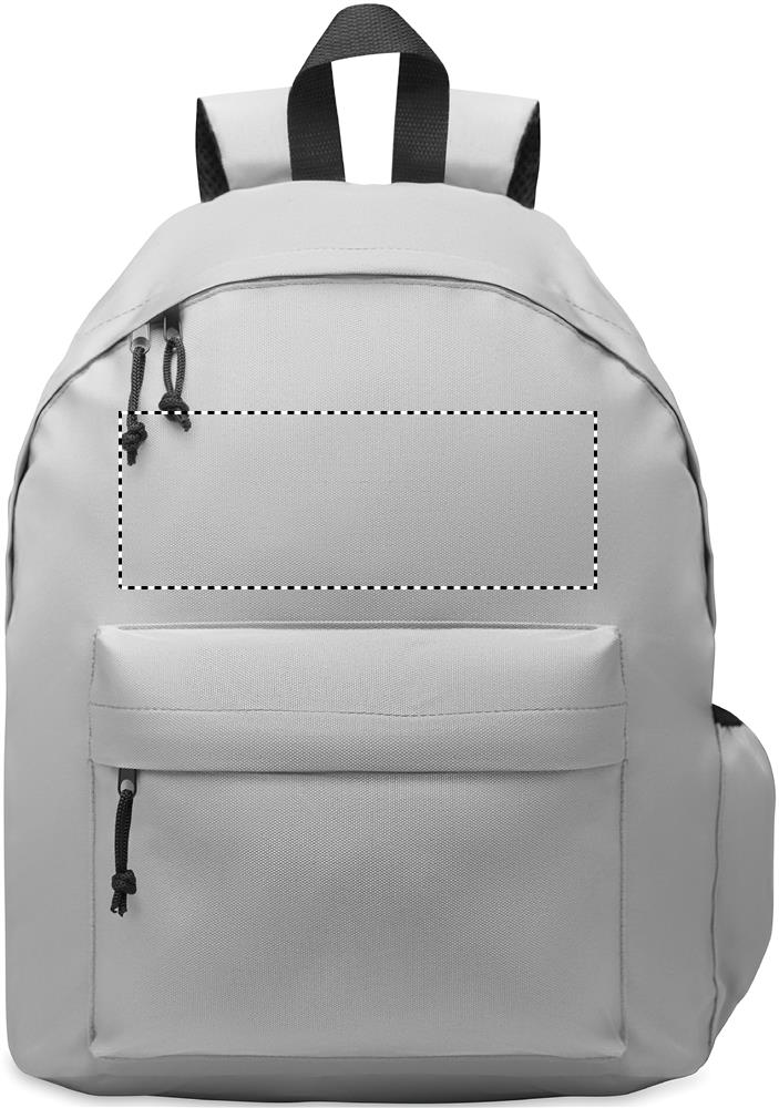 Backpack in 600D RPET polyester with outside pocket with zipper. Padded back and has a side bottle compartment.