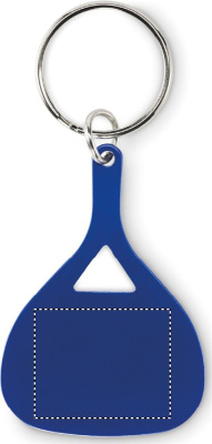Recycled aluminium paddle-shaped keyring.