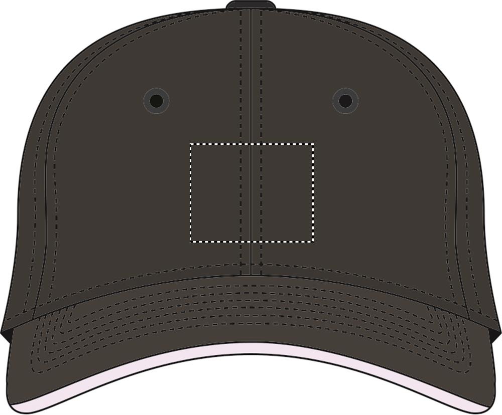 6 panel baseball cap in brushed heavy cotton 270 gr/m2 with adjustable metal buckle with tuck-in slit. With coloured sandwich peak. Size 7 1/4.