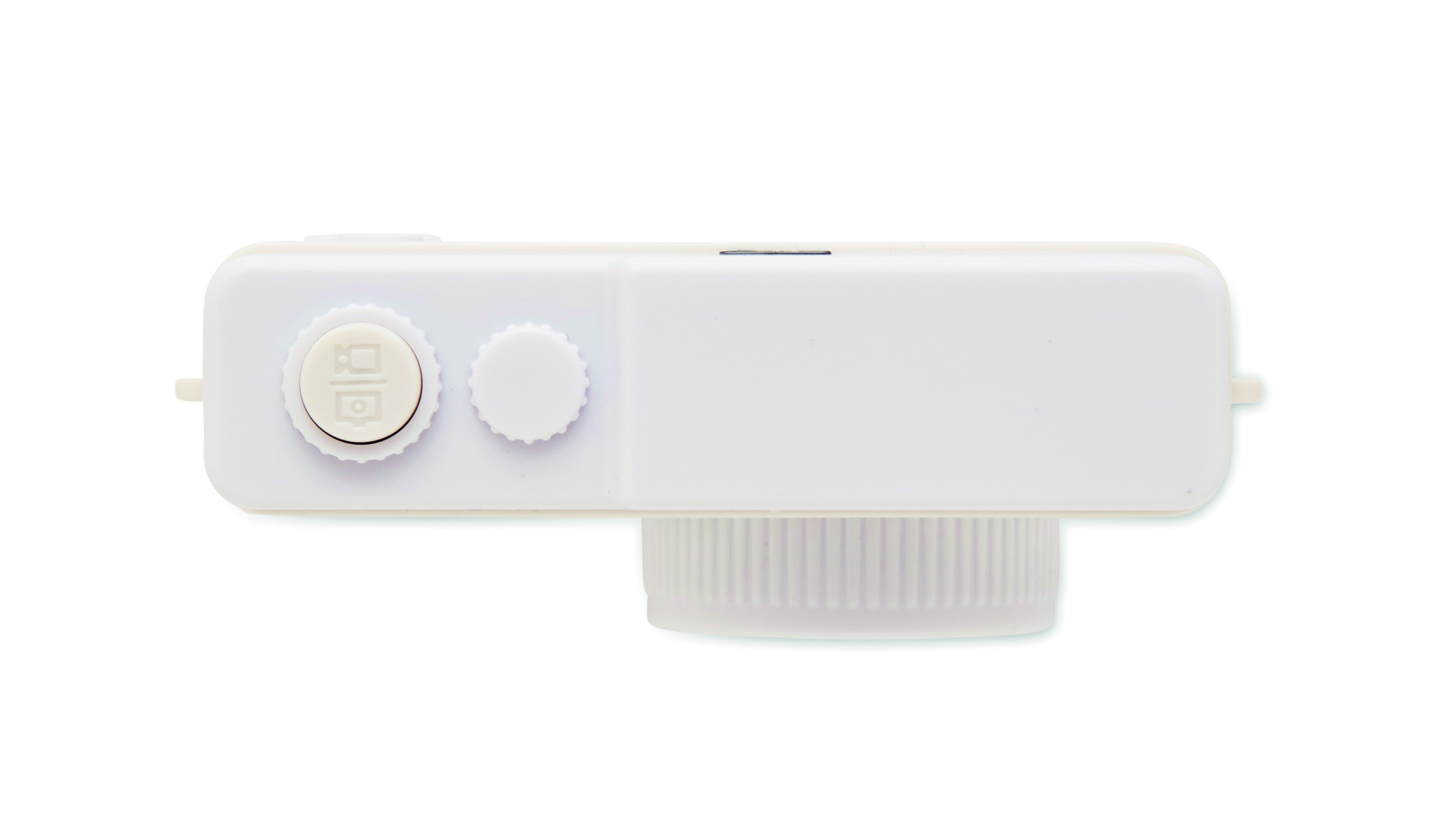 Compact digital camera with LCD monitor. Single Lens with F2.4 lens, 2.0'' LCD, photo resolution up to 12MP and FHD video. Includes USB-C cable and built-in 300mAh battery. SD card not included