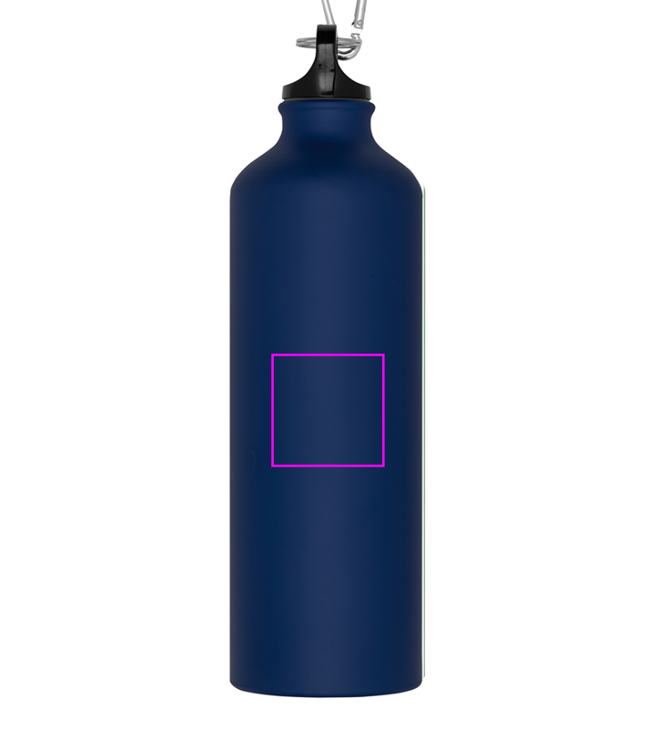 Leak-proof drinking bottle made of aluminum with carabiner and a capacity of 800 ml. Your logo will be lasered on the bottle.