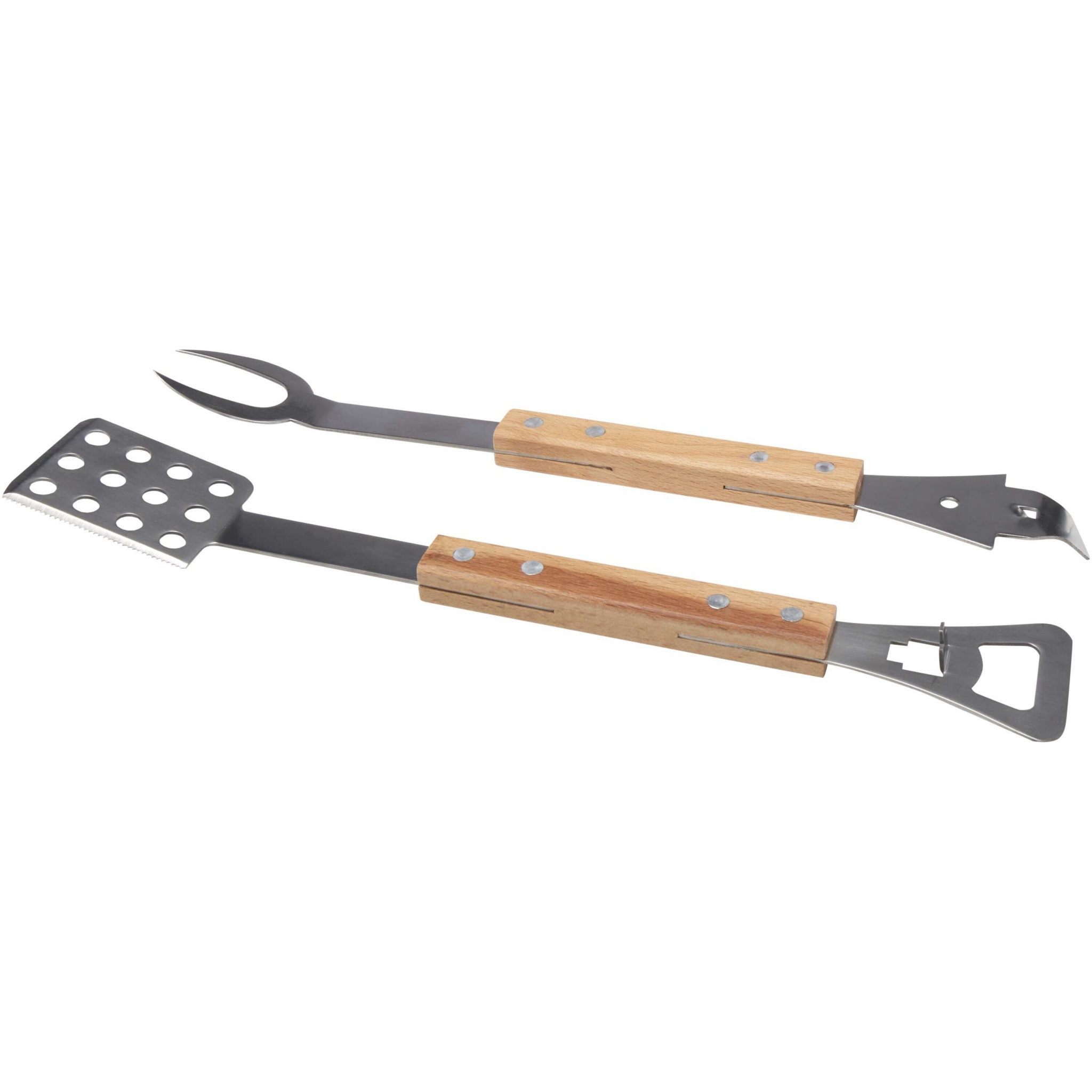 This handy 4-in-1 BBQ tool set features a spatula, fork, can opener, and bottle opener - all crafted from oak wood and RCS-certified stainless steel. The convenience and comfort of this tool makes it the perfect gift for any BBQ enthusiast.