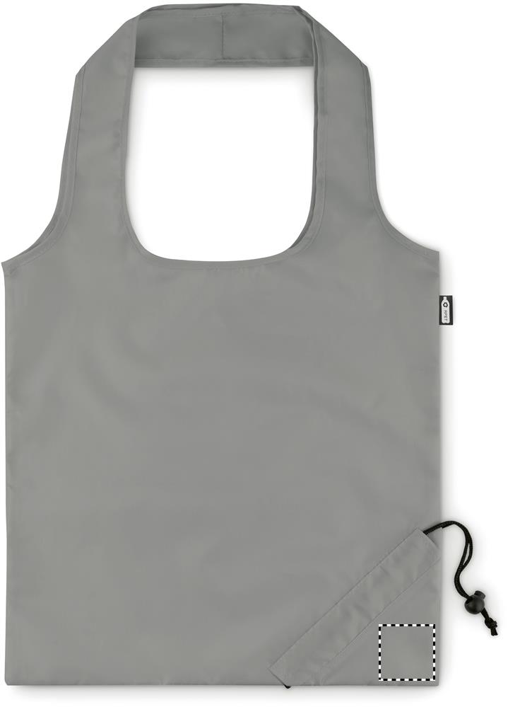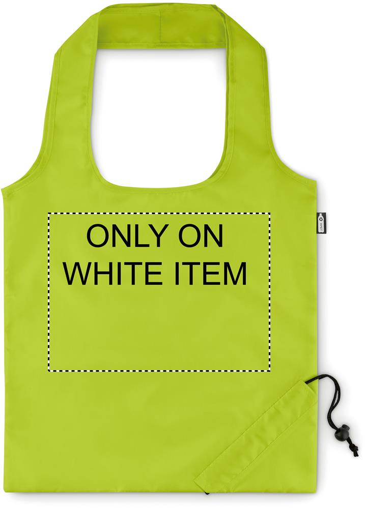 Foldable shopping bag in 190T RPET with drawstring closure on pouch. Sublimation print available on white item only.