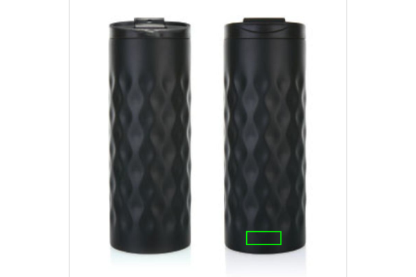 Stainless steel double wall tumbler, with a trendy geometric cut design. Capacity 350 ml.