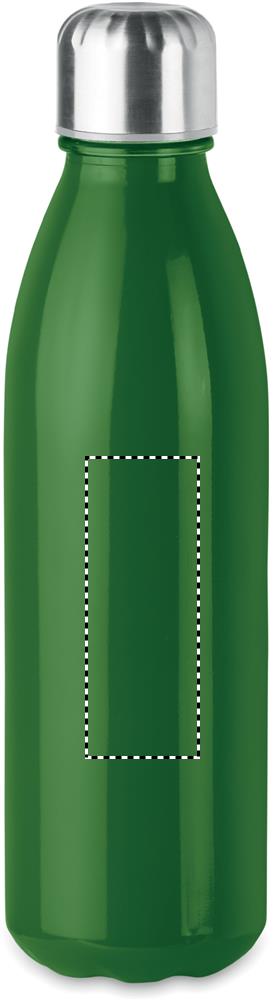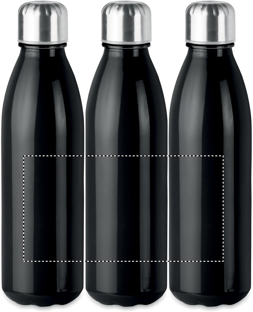 Glass drinking bottle with stainless steel lid. Capacity: 650 ml. Not suitable for carbonated drinks. Leak free.