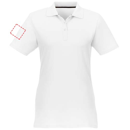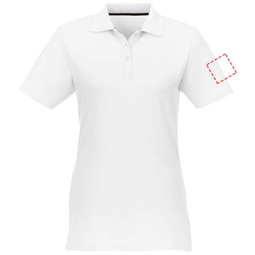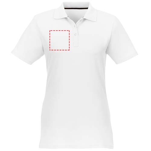 The Helios short sleeve women's polo combines refined style with unique custom branding options, and it is designed with a fitted shape for a feminine look. Made from 180 g/m² cotton pique, it offers lightweight comfort and durability. The interior, including tearaway-cutaway main label, allows for custom logo placement, making it the perfect pick for any event. With a classic polo collar and short sleeves, it transitions effortlessly from casual to formal occasions. Multiple colours available to suit any brand.