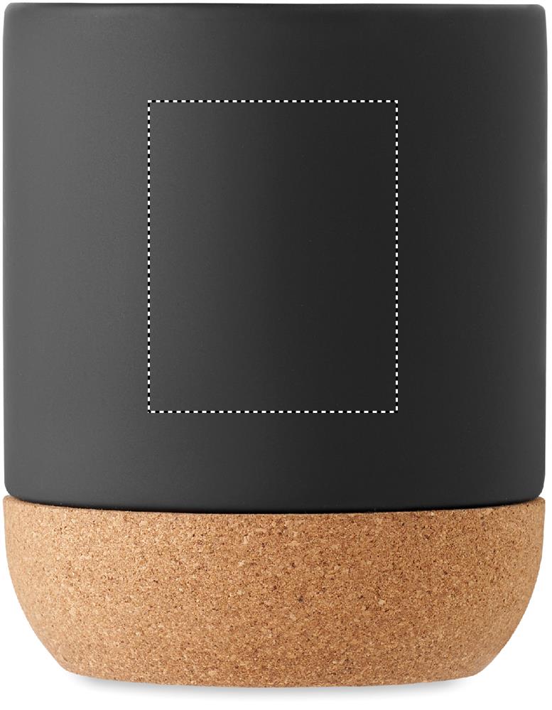 Matt ceramic mug with cork base detail. Capacity: 300 ml. Cork is 100% natural material. Due to its structural nature and surface porosity the final print result per item may have deviations.