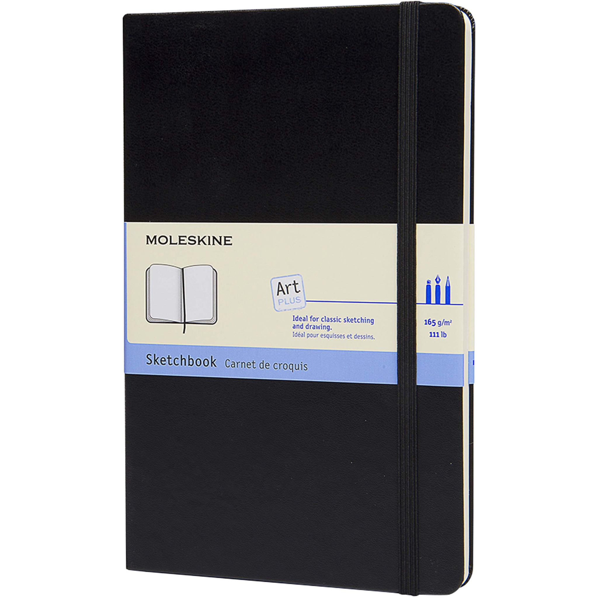 The Moleskine large art sketchbook is cardboard bound with a rounded cover, and has top quality acid-free paper. The sketchbook features a bookmark, an elastic closure, and an expandable inner pocket containing the Moleskine history.