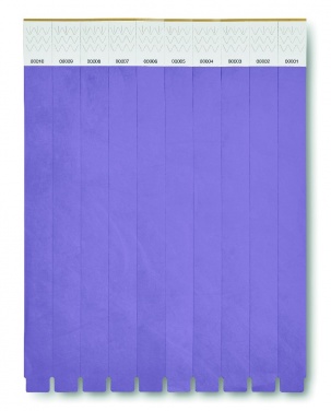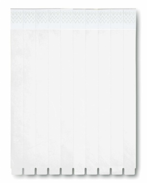 One sheet of 10 event wristbands. DuPont ™ Tyvek® 19mm wide. Including unique numbering on each wristband.
