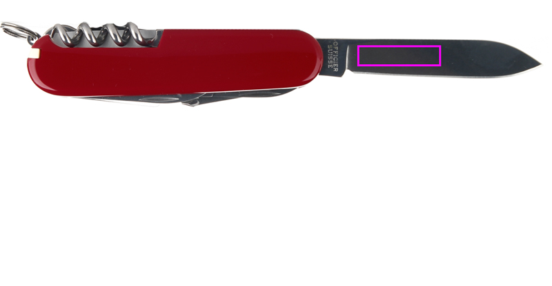Features: 1.large blade 2.small blade 3.corkscrew 4.can opener with: 5.-small screwdriver 6.bottle opener with: 7.-large screwdriver 8.-wire stripper reamer 9.punch 10.sewing eye 11.keyring 12.tweezers 13.toothpick 14.scissors 15.hook 16.woodsaw