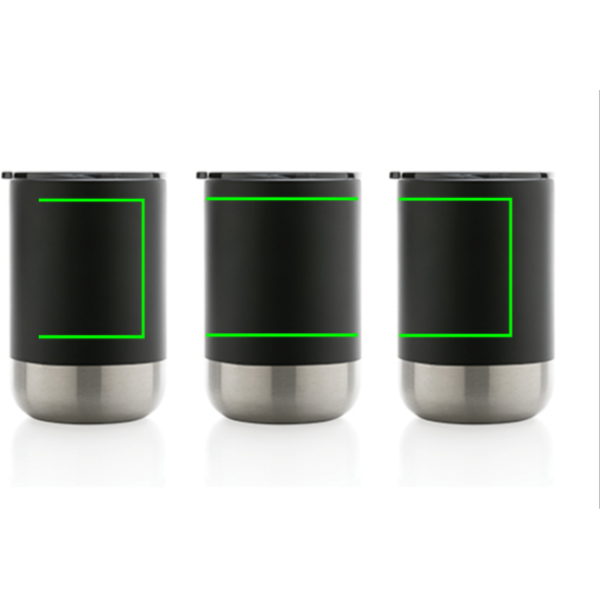 This beautiful tumbler features a recycled stainless steel construction with vacuum insulation to keep drinks warm for up to 3 hours or cold for up to 6 hours. Its trendy execution with stainless steel bottom accent makes it a true eye catcher. The lid with slide open function ensures a smooth drinking experience. Made with RCS (Recycled Claim Standard) certified recycled materials. RCS certification ensures a completely certified supply chain of the recycled materials. Total recycled content: 76% based on total item weight. BPA free. Capacity 360ml. Including FSC®-certified kraft packaging.