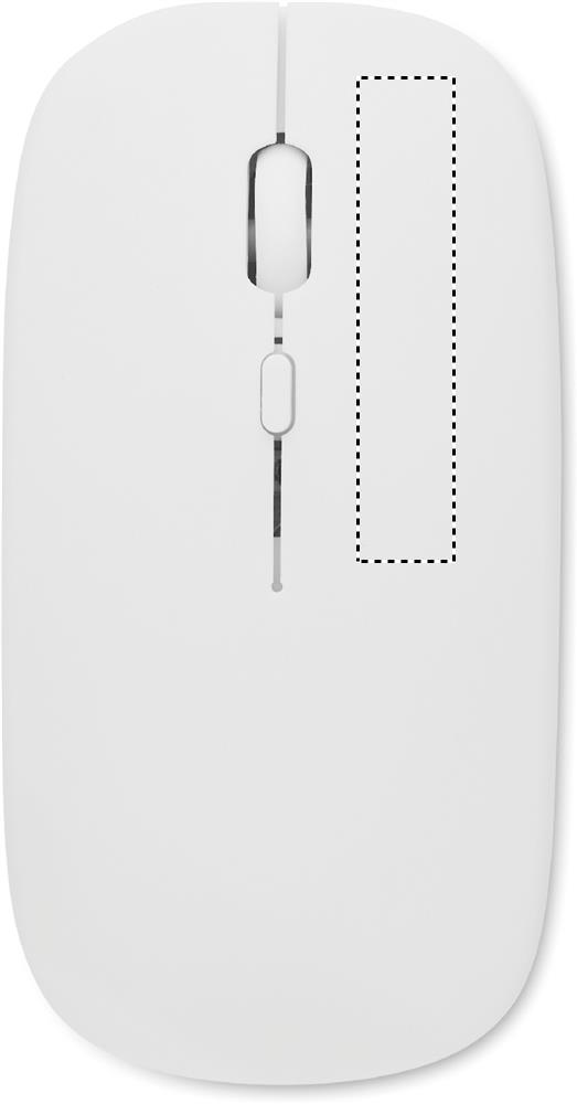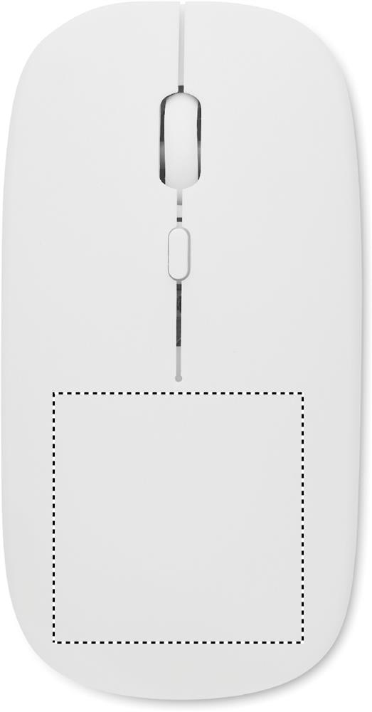 Wireless optical mouse in recycled ABS with USB rechargeable 500 mAh battery.