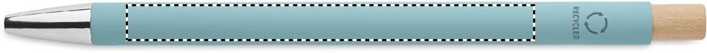Recycled aluminium push ball pen. Silver tip and clip. Blue ink.