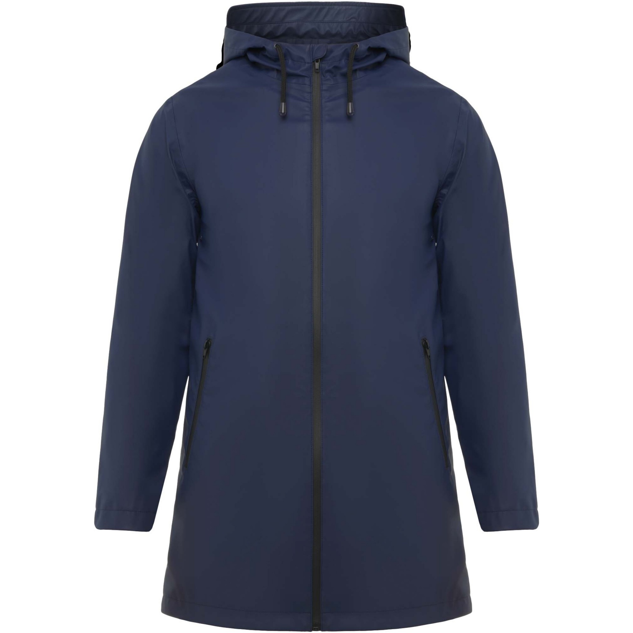 Waterproof raincoat. Hood with peak. Heat-sealed zips and seams. Contrasting details in black. Two side pockets with zip. Slit on back hem. Removable label. Waterproof. The model is 185 cm and is wearing size M.