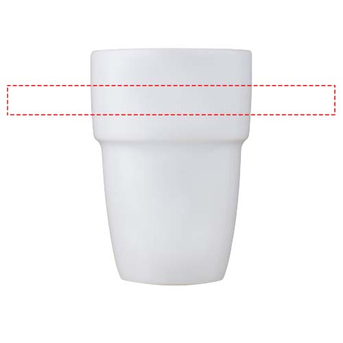 Gift set of four ceramic mugs that are stackable so that they take up as little space as possible and are neatly organized at the office or at home. Volume capacity is 280 ml. Dishwasher safe for all printing methods. Presented in a recycled cardboard gift box.