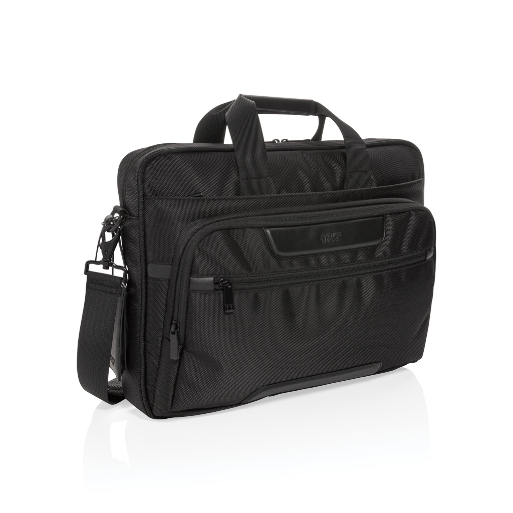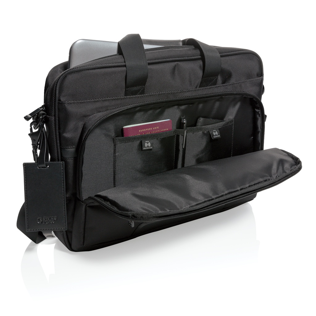 Logo trade promotional merchandise picture of: Swiss Peak RPET Voyager RFID 15.6" laptop bag