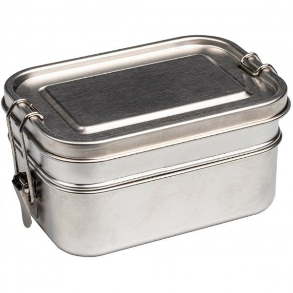 Kahekorruseline, vastupidav, keskkonnasõbralik ja robustne roostevabast terasest lõunakarp (alumine 700 ml, ülemine 450 ml) mõlemalt poolt klambriga suletava kaanega. Teie logo graveeritakse kaanele.