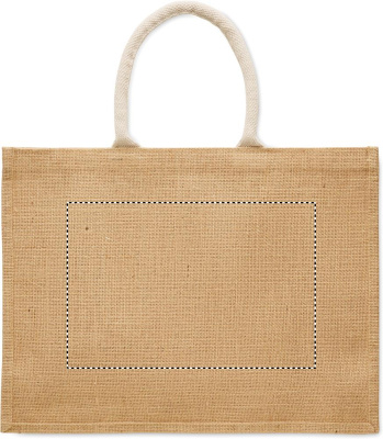 Lamineeritud džuudist ja 280 g/m² puuvillasest purjeriidest ostukott nöörsangadega. Sisaldab suurt avatud esitaskut.