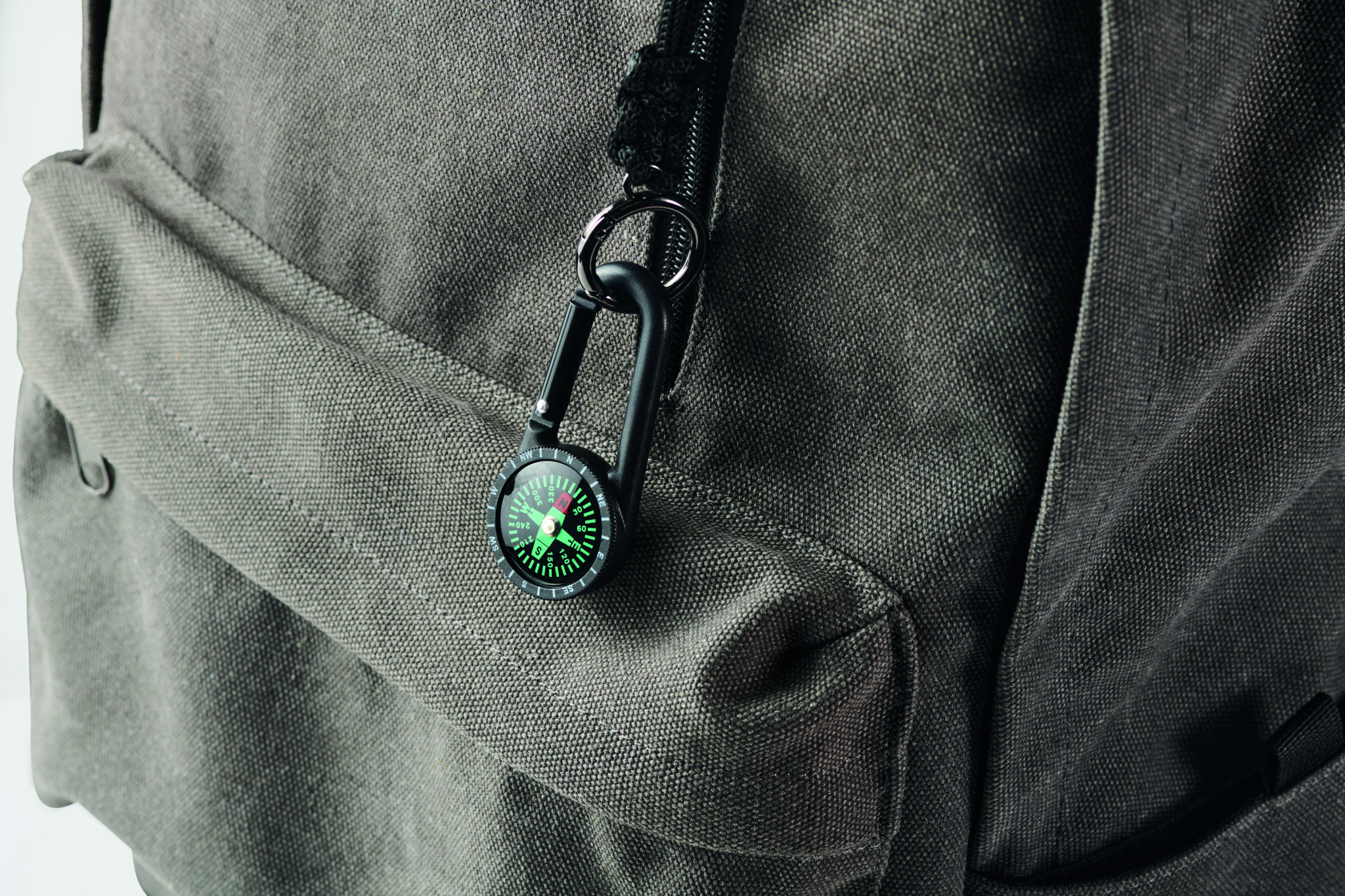 ABS-plastist õuekompass karabiiniga. Karabiin ei ole mõeldud ronimiseks (mitteprofessionaalseks kasutamiseks).