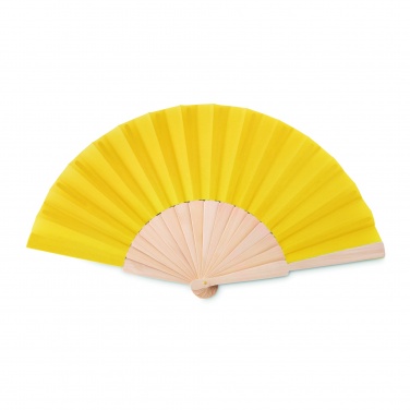 Käsitsi käsitsi ventilaator puidust polüesterkangaga.