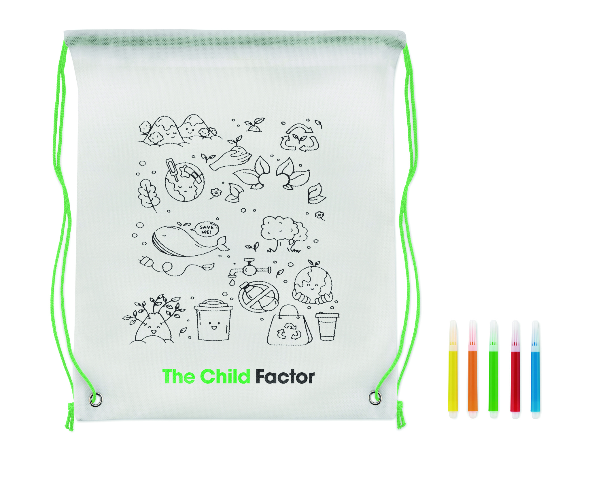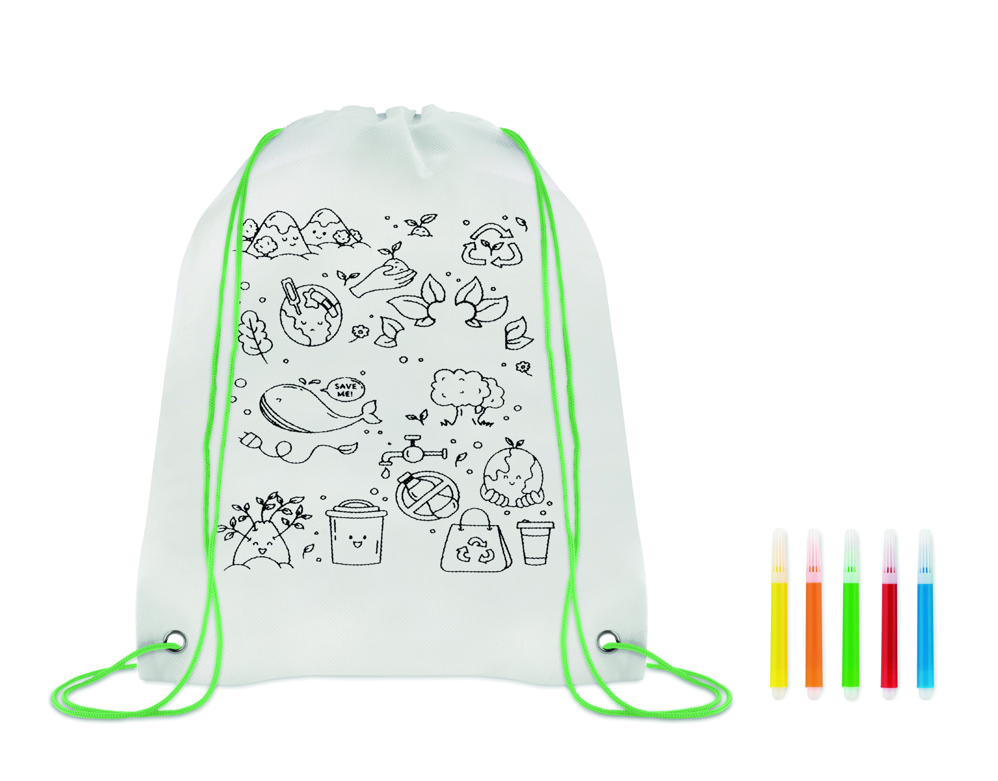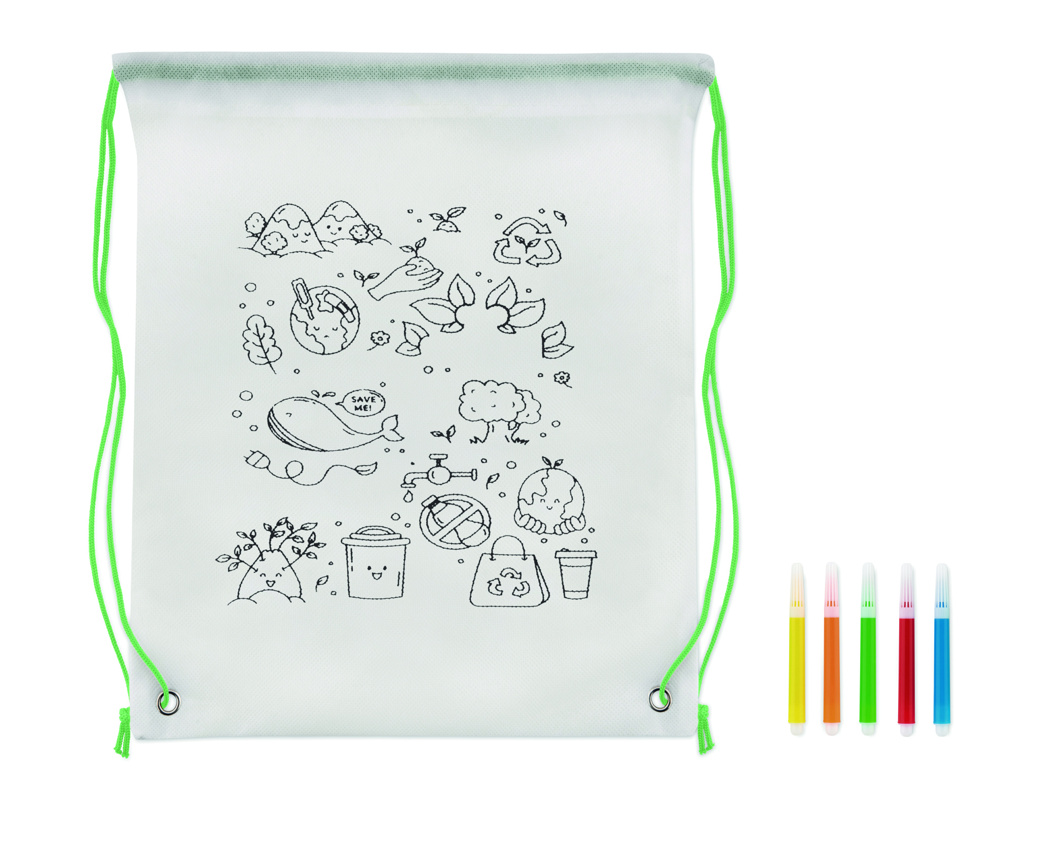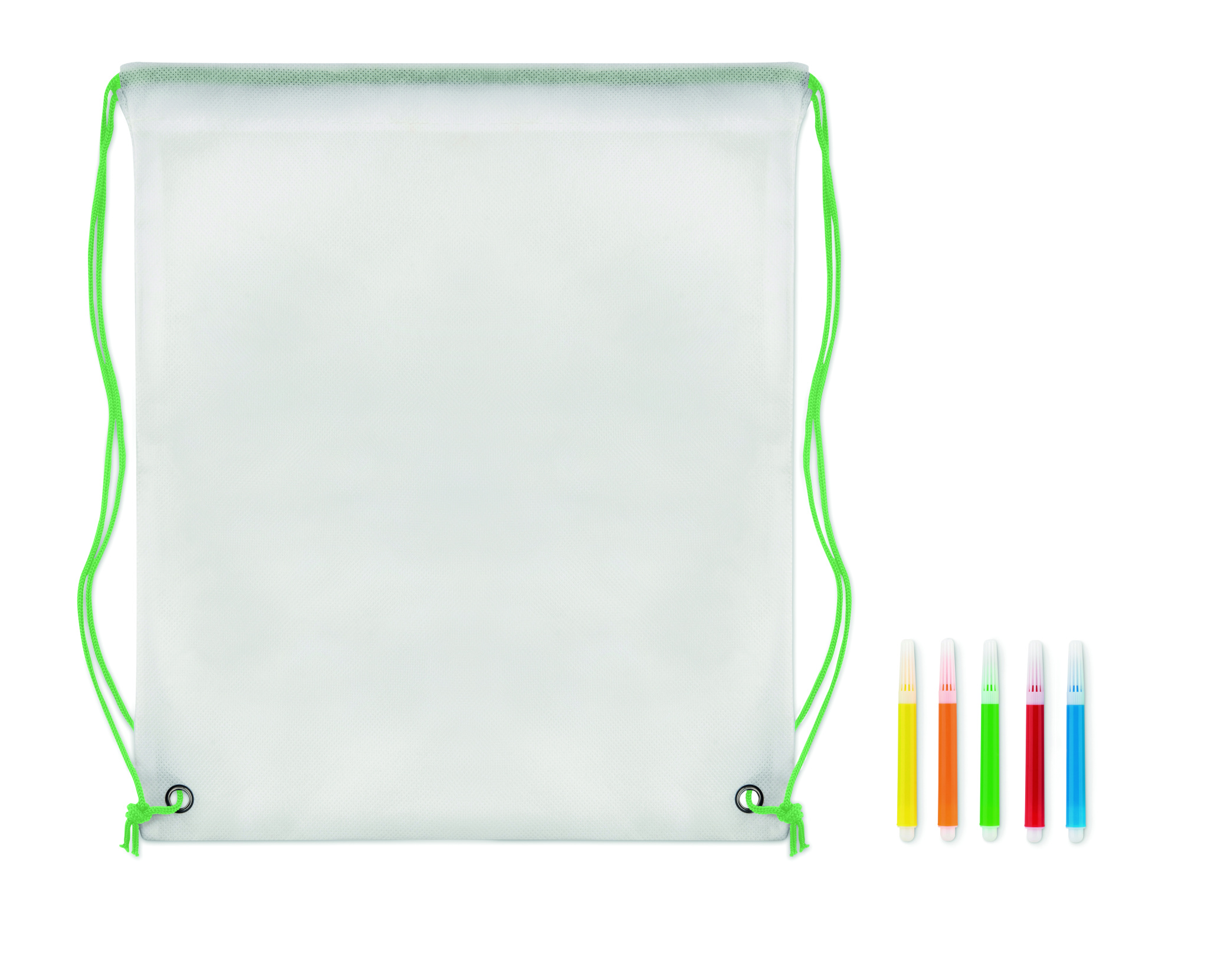 Lausriidest nööriga kott 5 markeriga ja värvilise disainiga. 80 gr/m². Standardne jäljend.