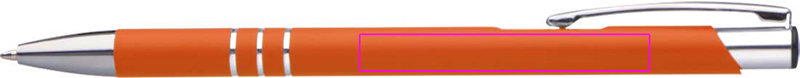 Õhuke metallist kuulpliiats kummiviimistlusega ja sinise kirjaga plastikust täidisega. Teie logo graveeritakse klipi alla.