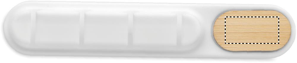Silikoonist kaablikorraldaja naturaalse bambusdetailiga. Kompaktne ovaalne disain hoiab juhtmed korras.