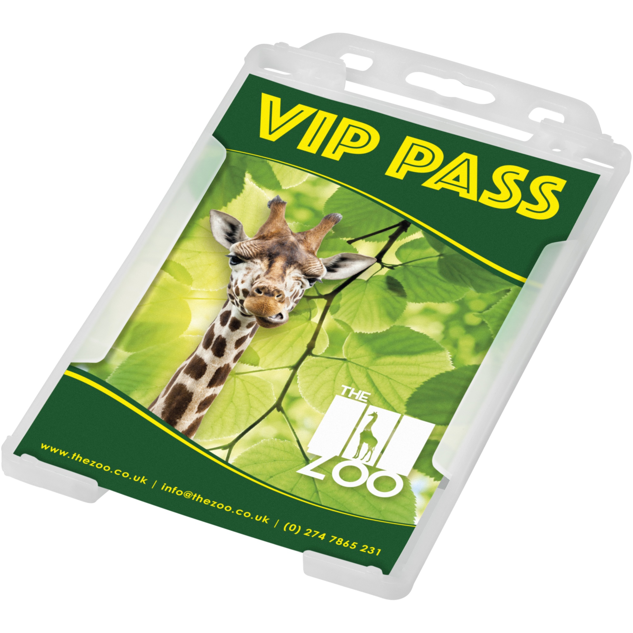 Taaskasutatud plastikust portreekaardihoidja. Ideaalne näituste, töökohtade ja võrguürituste jaoks. Sobib tavaliste visiitkaardi- ja krediitkaardisuuruste pääsete jaoks. Taaskasutatud plasti olemuse tõttu võivad värvitoonid veidi erineda ja esineda võib värvilaike. Valmistatud Ühendkuningriigis.