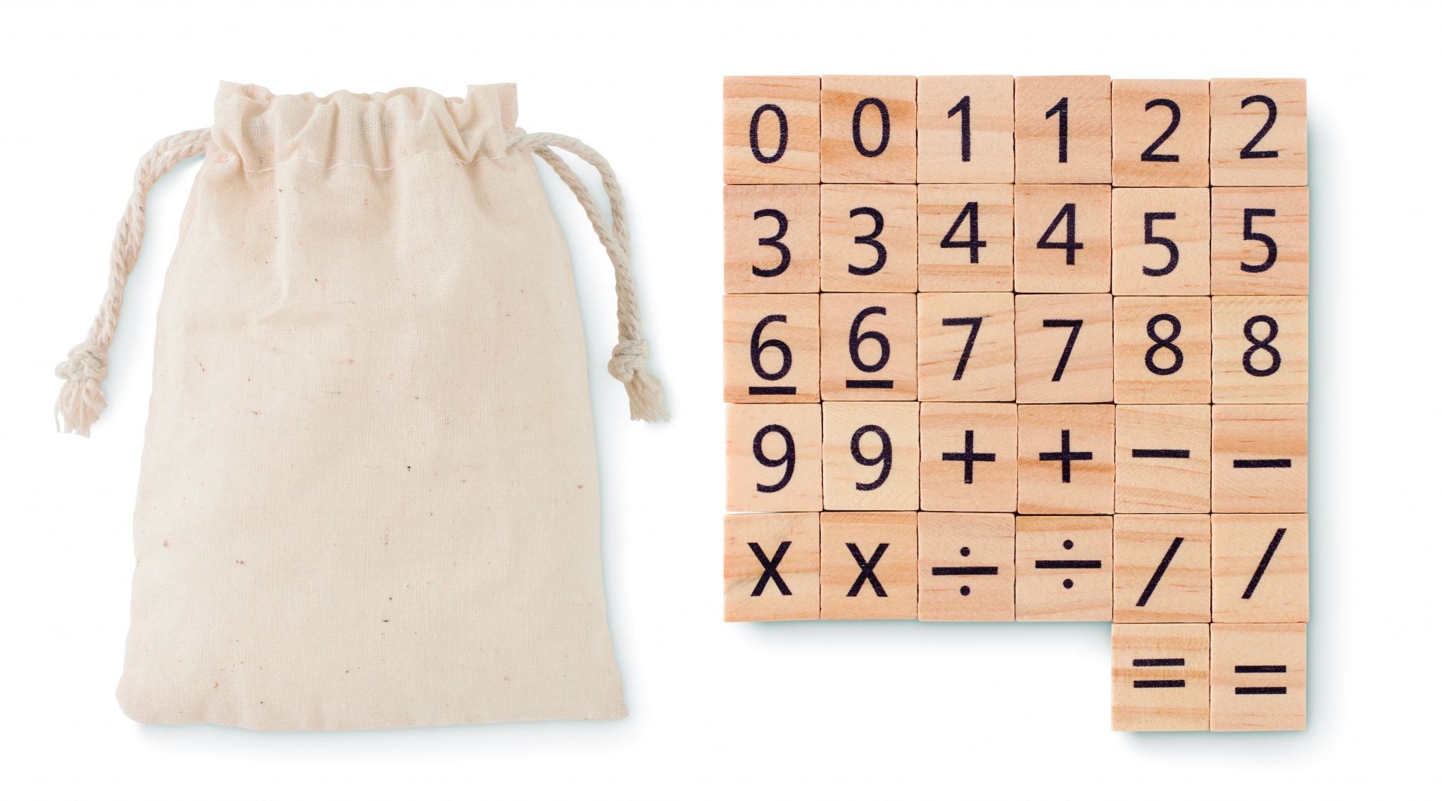 Puuvillases kotis puidust hariv loendusmäng. Sisaldab 32 tükki.