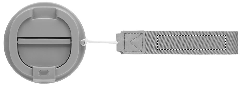 Must topeltseinaga termoskruus PP-st siseseinaga, taaskasutatud PP-st välisseinaga, taaskasutatud roostevabast terasest detailidega ja RPET-randmepaelaga. Mahutavus: 300 ml.