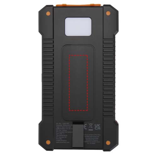 Logo trade liikelahjat tuotekuva: Altair 5 000 mAh:n ja 10 W:n kierrätysmuovista valmistettu kestävä aurinkoenergialla toimiva varavirtalähde, jossa on sisäänrakennettu taskulamppu