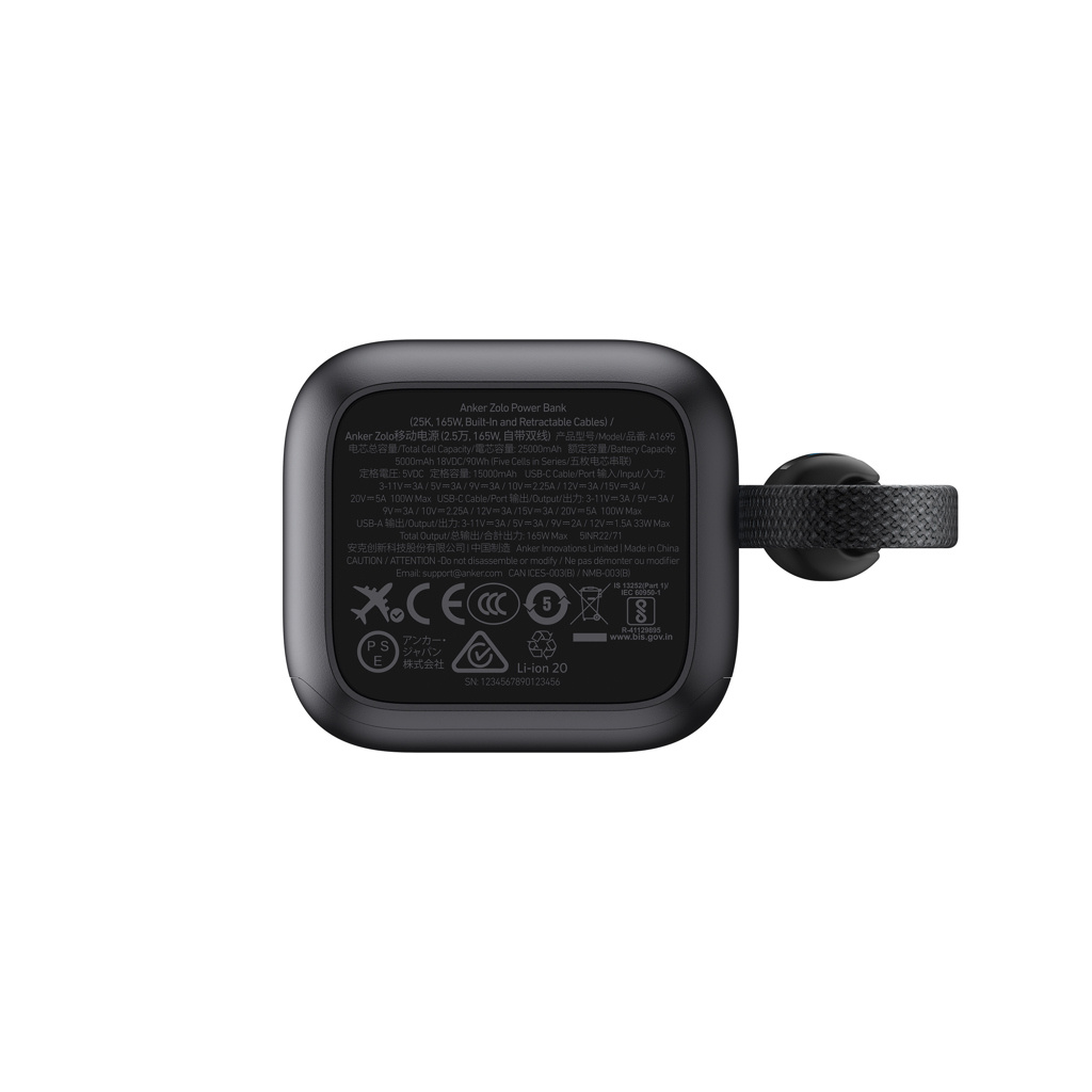 Logo trade liikelahja kuva: Anker-varavirtalähde 25 000 mAh, 165 W, kelautuva kaapeli