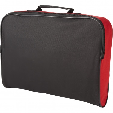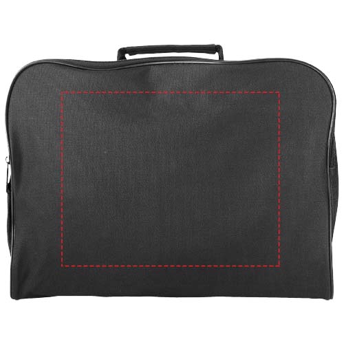 Neliönmuotoinen kokouslaukku, jossa on vetoketjullinen säilytystasku. A4-asiakirjoille.