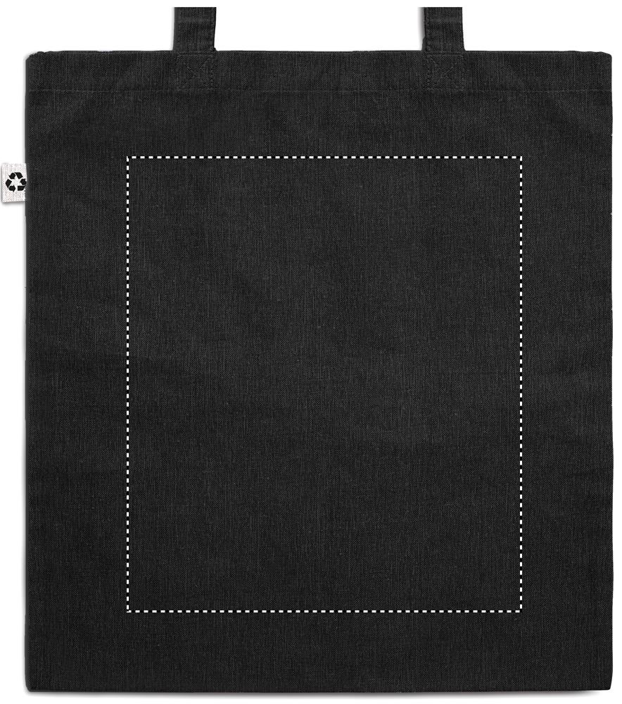 140 gr/m² kierrätetystä puuvillasta valmistettu 2 sävyinen kangaskassi, pitkillä kahvoilla (20%/80%). Tuote voi kutistua painatuksen aikana.