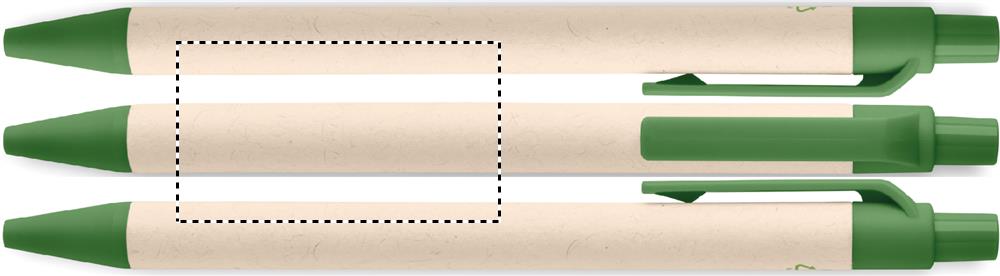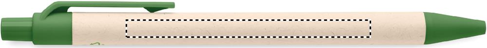 Kuulakärkikynä, jonka runko on valmistettu kierrätyskartongista (70% maitopurkeista tehtyä kartonkia ja 30% kierrätyspaperia) ja PLA-osat 100 % biohajoavasta maissista. Sininen muste.