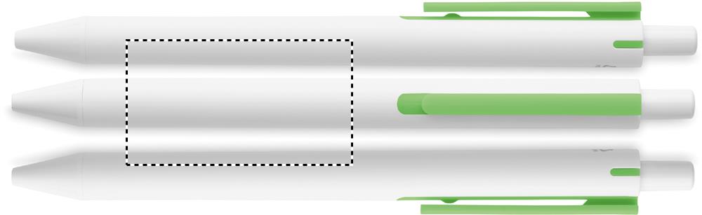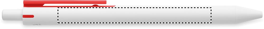 Kuulakärkikynä painonapilla kierrätetystä ABS-materiaalista. Valkoinen runko ja kontrastivärinen klipsi, sininen muste.