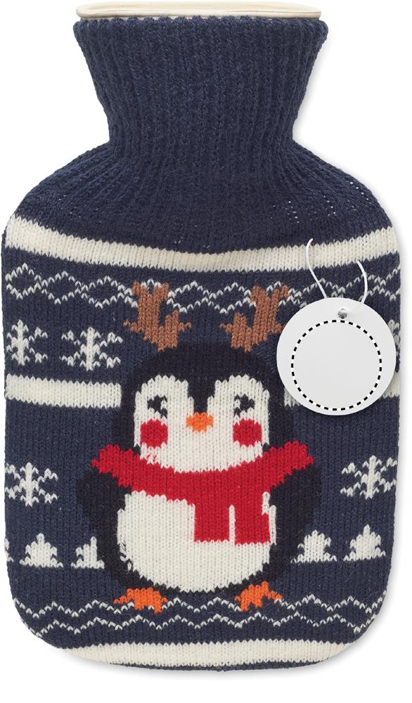 Kuumavesipullo, jossa on jouluinen neulepinta. Käytetään lämmön antamiseen, yleensä sängyssä, mutta myös lämmön antamiseen tiettyyn kehon osaan. Tilavuus 250 ml.