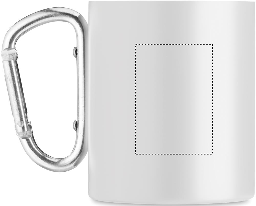Kaksiseinäinen 300 ml ruostumattomasta teräksestä valmistettu muki, karabiinikoukulla. Tilavuus 300 ml.
