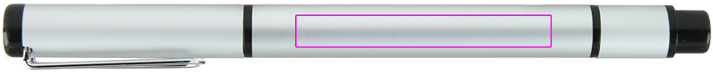 Alumiininen kuulakärkikynä, jossa musta kirjoitustäyttö ja keltainen korostuskynä toisella puolella. Kaiverremme logosi varteen.