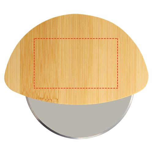 Pizzaleikkuri bambukahvalla ja ruostumattomasta teräksestä valmistetulla terällä.